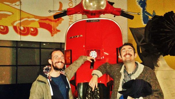 Prima dell'intervista chiediamo ai due Gatti di fare delle foto nel museo della Vespa: “Ganzo!” risponde Francesco, “Bellissimo! Andiamo!” dice Tommaso Novi, amante dei mezzi a due ruote a cui pochi mesi fa hanno rubato la moto (“Non l'ho ritrovata” dice sconsolato mentre guarda un prototipo di Vespa da guerra).