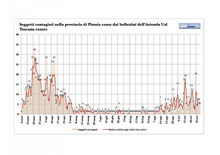 Con quello di oggi, i decessi sono saliti a 83 da quando è iniziata l'epidemia. La Regione segnala in tutto quattro pazienti deceduti nelle ultime 24 ore in Toscana: si tratta di due uomini e due donne con età media di 77,5 anni. Oltre a quello riscontrato a Pistoia, se ne sono verificato uno a Firenze e 2 a Pisa.