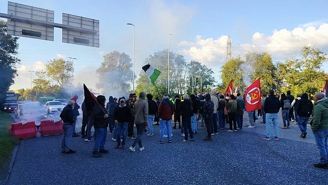 Il picchetto sull'Aurelia a Livorno (Foto di: Sindacato Usb Livorno / Facebook)