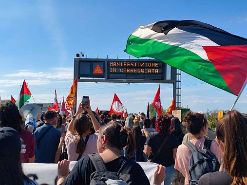 Anche a Pisa le prime stime parlano di almeno 10 mila persone scese in piazza. Dopo il corteo nelle vie centrali, alcuni manifestanti si sono spostati anche sull'Aurelia, dirigendosi verso l'autostrada. I manifestanti hanno sfilato sulla bretella dell'autostrada A12 in direzione sud, verso il casello Pisa Centro. Poco dopo, hanno raggiunto anche la FiPiLi, con disagi per automobilisti e circolazione stradale bloccata in entrambe le direzioni tra Pisa nord-est e Pisa aeroporto. Il lungo serpentone ha poi raggiunto l'aeroporto Galiei. Lì i manifestanti avrebbero forzato lo sbarramento delle forze dell'ordine, invadendo la pista e i piazzali dello scalo pisano, con la conseguente sospensione dei voli. L'operatività dello scalo è ripresa solo dopo che i manifestanti hanno lasciato l'aeroporto e la manifestazione si è sciolta.