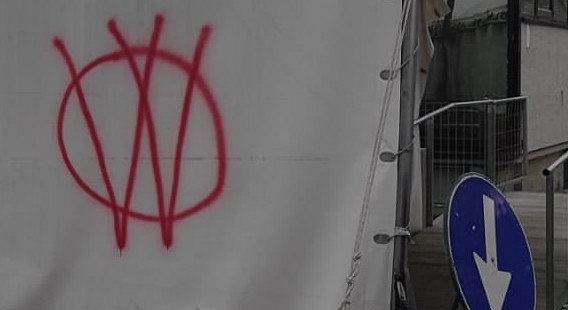 Il simbolo della doppia W cerchiata di rosso è comparso insieme a scritte su CO2, digitale e Ztl. Indagano le forze dell'ordine