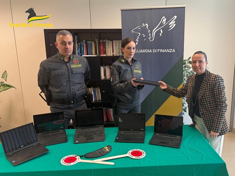 PROVINCIA DI PISTOIA — Raid nella scuola, con l'intrusione di una banda di ragagazzini nella notte fra il 7 e l'8 Marzo scorsi per far man bassa di computer portatili dalle aule: i pc, 6 in tutto, sono stati recuperati e restituiti all'istituto di Pistoia dalla guardia di finanza.