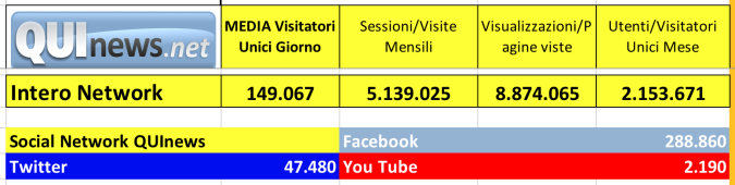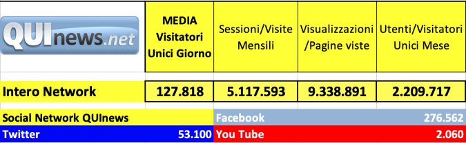 I DATI AUDIWEB DEL MESE DI NOVEMBRE 2020 NON SONO PRESENTI PER ADEGUAMENTO TECNICO DELLA RILEVAZIONE DEL NETWORK QUINEWS COME SUB BRAND DEL CORRIERE DELLA SERA